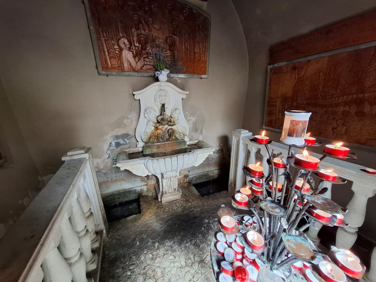 piccola sorgente nascosta in una grotta. Tra le pietre venne fuori anche un’immagine della Madonna, ancora oggi venerata come quadro miracoloso della Madonna della Salute, e attorno a quel prodigio nacque la prima cappella, poi ampliata dagli Agostiniani nei decenni successivi. Il complesso attraversa secoli di storia, dalle spoliazioni napoleoniche alla riapertura al culto nel Novecento. Ancora oggi il santuario resta meta di pellegrinaggi a piedi dalle parrocchie di Abano, Montegrotto e Teolo.