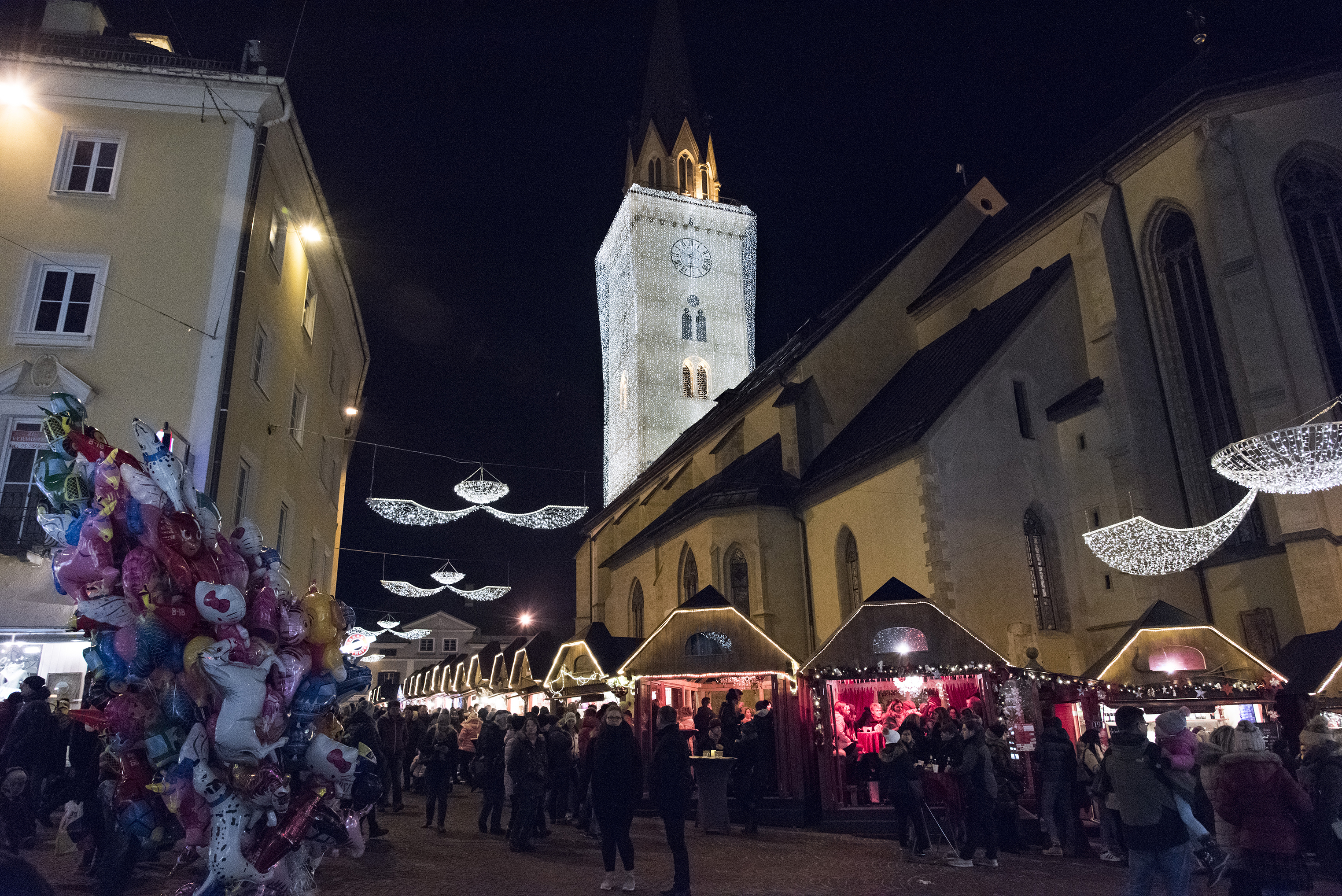 Ci sono più di 60 chioschi, divisi in tre zone principali: intorno alla Parrocchia di San Giacomo c’è la parte più tradizionale; accanto, nella piazza centrale Hauptplatz, si susseguono bancarelle alimentari, alternate a capanni in cui le persone possono ripararsi dal freddo mentre gustano un piatto tipico. Poco più avanti, nel Parco del Parkhotel, 17 casette disposte a cerchio espongono prodotti realizzati a mano da artigiani della zona. Dopo tanti profumi e colori abbiamo terminato la giornata camminando fra i chioschi degli artigiani, assaggiando biscotti che un sorridente signore della vicina cittadina di Landskron aveva preparato proprio per noi. A rendere unica e inimitabile l’atmosfera natalizia, un quartetto di musicisti che ha deliziato le nostre orecchie mentre sorseggiavamo un bel bicchiere di vin brulé.