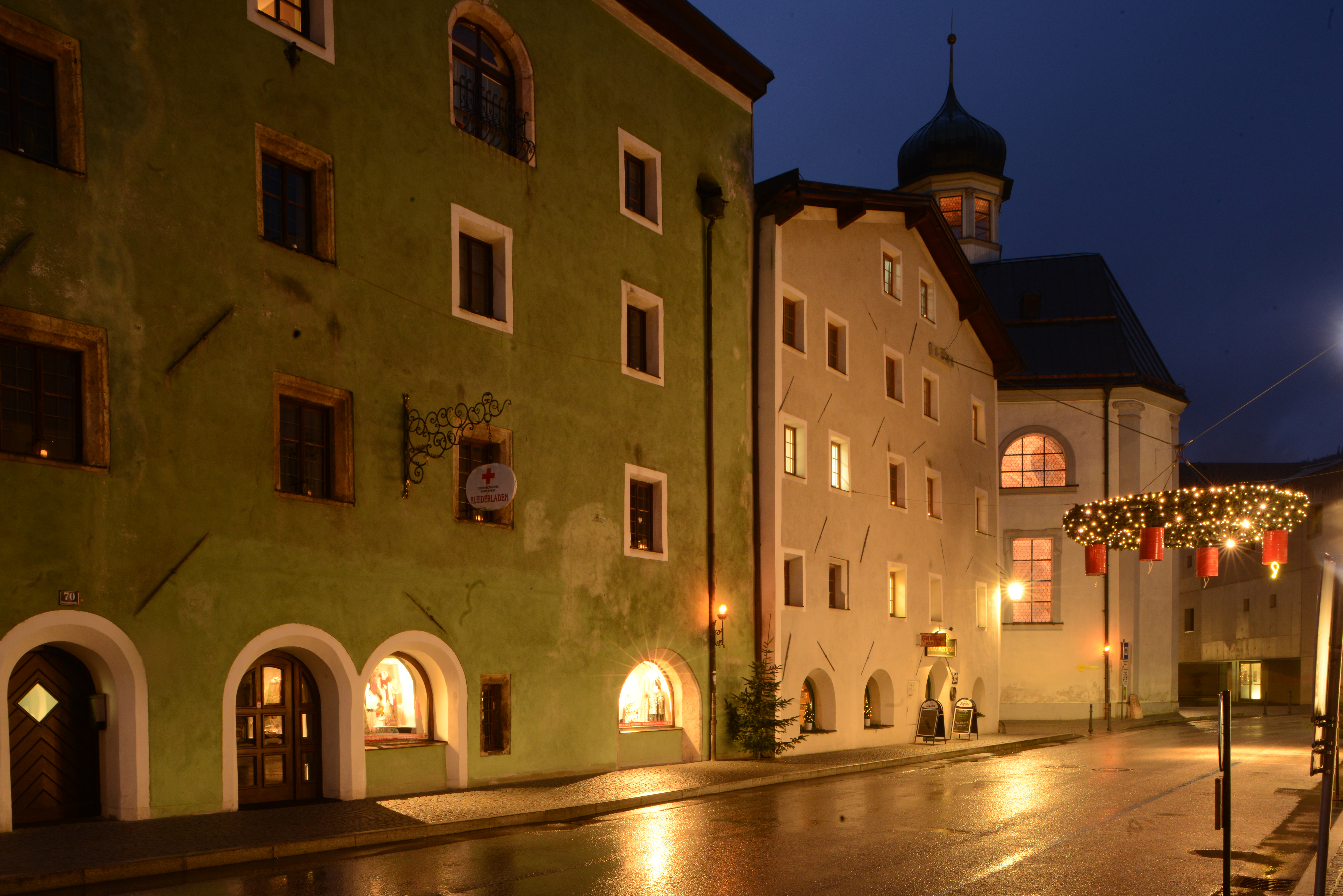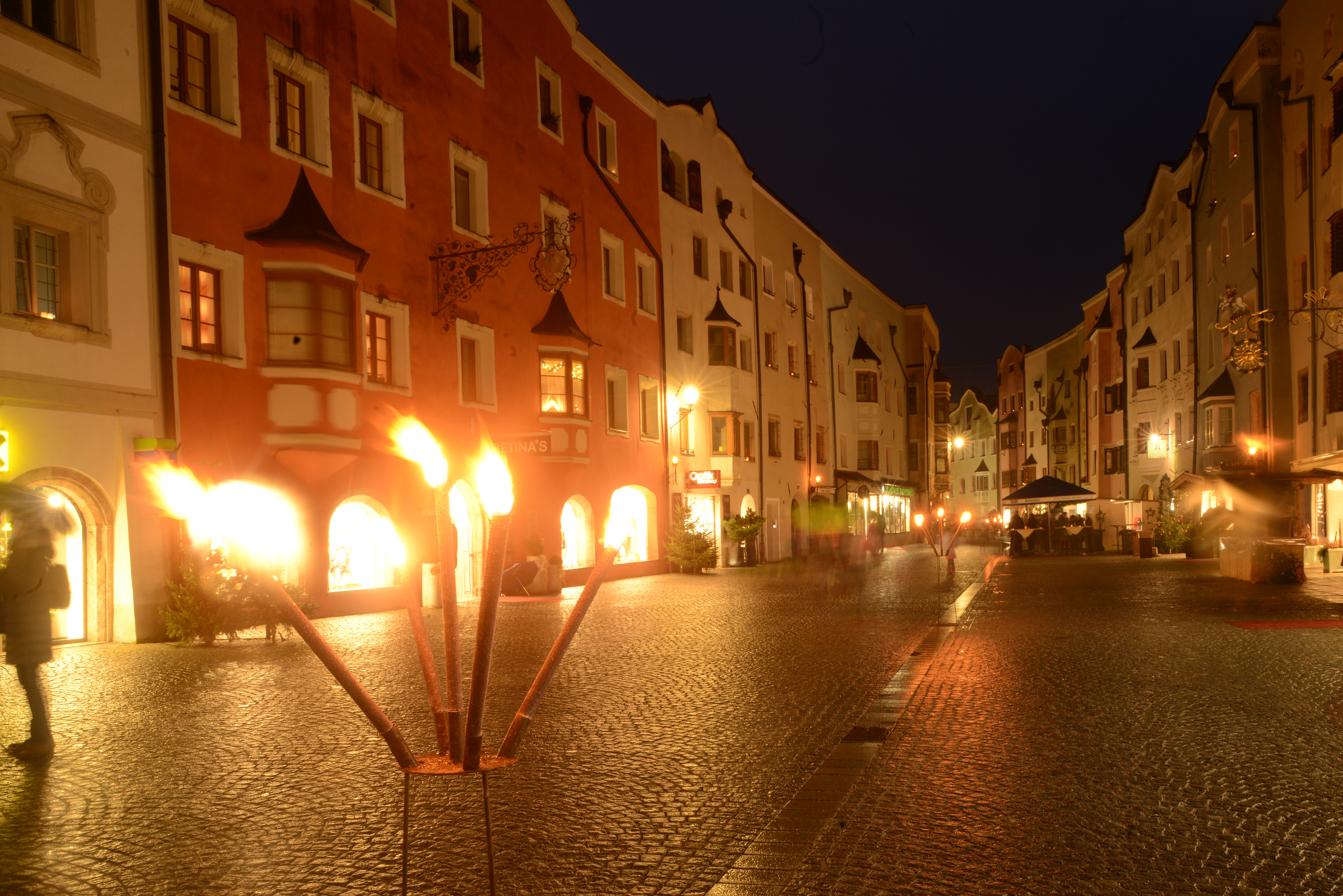 La festa inonda anche lo stadtpark, in pieno centro storico. Uno spazio di luci e odori dove gustare ottime specialità locali. Poi calpestate il ciottolato di Römerhofgasse, intatta stradina medievale lambita da case secolari, pitture e vecchie insegne in ferro battuto. Un tuffo nei secoli. È qui che aleggia la leggenda del gatto nero. Si dice frequentasse una misteriosa caverna dove oggi si trova l’affascinante Stollen 1930, lunghissimo gin bar scavato nella roccia. Ci sono più di 1000 tipi di gin, da ogni angolo del mondo. Nei dintorni di Kufstein potete raggiungere a piedi, sulla cima di una fitta faggeta, la chiesetta di Thierberg, visitare il centro equestre Fohlenhof Ebbs dove risiedono magnifici cavalli di razza Haflinger o ammirare dal vivo il lavoro degli operai della storica vetreria Riedel: armeggiano a temperature torride, intorno a infuocati forni. Kufstein, capoluogo del Tirolo, è solo uno dei tanti grani del rosario di paesi e piccole città che ogni anno sprofondano nella magica atmosfera dell’Avvento. Basta infatti un’ora di treno per sconfinare nei borghi natalizi annidati tra le valli intorno a Innsbruck. A Rattenberg, la più piccola città dell’Austria, il mercatino va in scena sul far della sera, con esplosioni di luci e colori. Qui potete anche assistere alla produzione artigianale del vetro soffiato, e creare voi stessi la vostra palla di Natale, assistere alla preparazione della corona dell’Avvento con candele rosse e rametti di sempreverdi e poi sedervi al caffè Hacker dove il maestro pasticcere Reinhard e la sua equipe decorano ottimi biscotti natalizi al pan di zenzero, alcuni con le facce di diavoli. E infatti qui intorno, tra i monti, va in scena il 5 dicembre di ogni anno la sfilata dei Krampus, una delle più arcaiche e misteriose feste dell’arco alpino. I partecipanti indossano terrificanti maschere di legno e così agghindati se ne vanno per i paesi a seminare ancestrali paure.