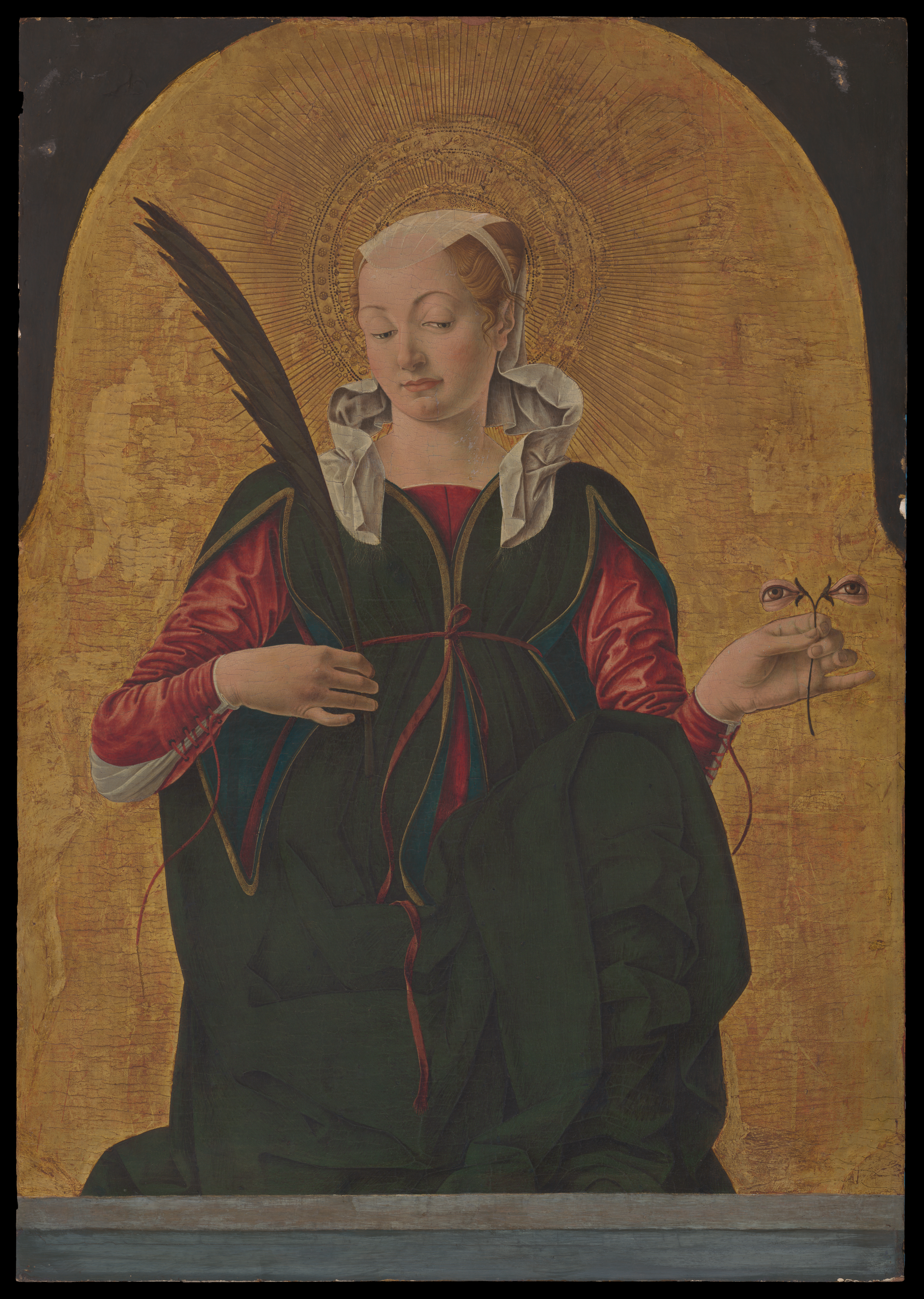 La superba pala d’altare dedicata a San Vincenzo Ferrer fu concepita per la cappella di famiglia di Floriano Griffoni all’interno della Basilica di S. Petronio a Bologna. La sua realizzazione, collocata tra il 1470 e il 1472, fu affidata al ferrarese Francesco del Cossa, allora all’apice della sua straordinaria carriera artistica, iniziata intorno al 1456 e stroncata dalla peste nel 1478. I contatti tra l’artista e il capoluogo emiliano, attivi per quasi un ventennio, si tradussero nella realizzazione di alcuni capolavori come l’Annunciazione di Dresda, la Madonna del Baraccano e la Pala dei Mercanti. Il Polittico Griffoni segnò l’inizio della sua collaborazione con il più giovane Ercole de’ Roberti, uno dei più formidabili sodalizi artistici del secondo Quattrocento italiano. Assieme a Cossa e de’ Roberti lavorò alla cornice il maestro d’ascia Agostino de Marchi da Crema. Attorno al 1725 il nuovo proprietario della cappella, il Monsignore Pompeo Aldrovandi, fece smantellare la pala e destinò le singole porzioni figurate a “quadri di stanza” della residenza di campagna della famiglia a Mirabello, nei pressi di Ferrara. Nel corso dell’Ottocento i dipinti entrarono poi nel giro del mercato antiquario e del collezionismo prima di pervenire nei 9 musei, oltre la metà dei quali fuori dai confini nazionali, che oggi custodiscono le opere.