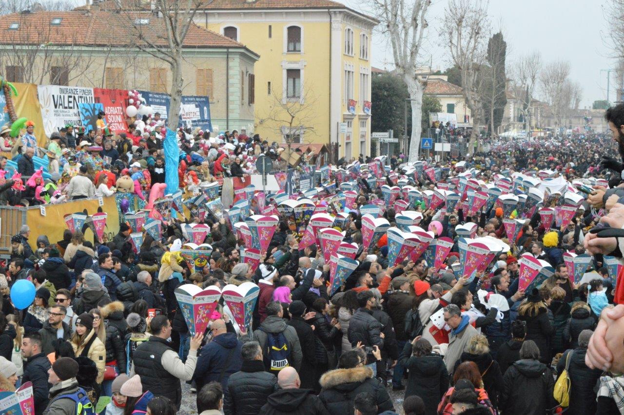 C’è un rito che rende unico il Carnevale di Fano in tutta Italia: il Getto, la spettacolare pioggia di dolciumi lanciati dai carri sul pubblico. Circa 200 quintali di caramelle e cioccolatini trasformano ogni sfilata in un momento di festa collettiva, gioiosa e profondamente intergenerazionale. Un gesto semplice e potentissimo, che narra la gioia, il buon augurio e racconta meglio di qualsiasi slogan il senso di comunità che anima questa manifestazione da oltre sei secoli.