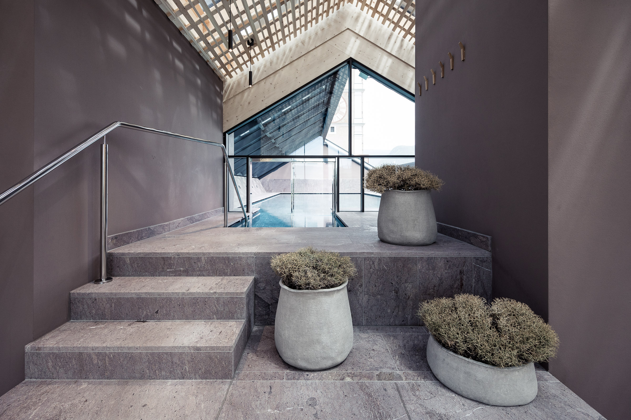 Unica e scenografica, e di grande impatto visivo, è poi la rooftop sky pool: dalla spa una scala in pietra conduce sulla terrazza dove, al cospetto di un panorama impagabile, si apre una grande piscina a cielo aperto, affacciata sui tetti di Castelrotto e sulle splendide cime dolomitiche. Mantenuta alla temperatura costante di 30°, la piscina è costruita sul modello di un tipico fienile ed è l’ideale, d’estate o di inverno, per rilassarsi e rigenerare corpo e mente sfruttando tutti i benefici dell’acqua e dell’incredibile vista sulla natura circostante in un’atmosfera molto intima e confortevole. Accanto alla sky pool anche un fantastico sky whirlpool, idromassaggio a cielo aperto.