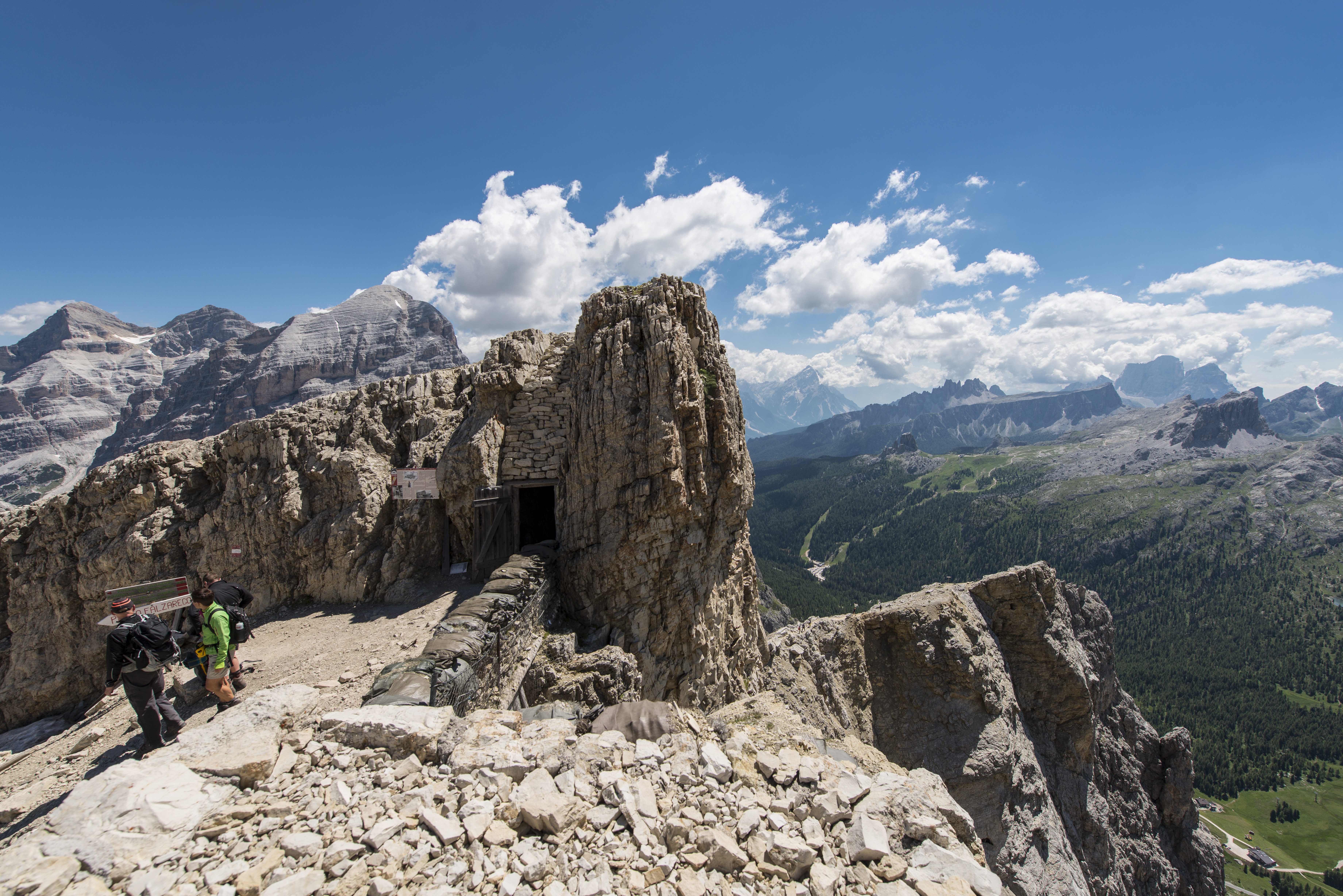 Tutto intorno, un paesaggio che si può leggere come un libro di storia avvincente: il Lagazuoi, le 5 Torri, il Sasso di Stria e dal museo del Forte Tre Sassi compongono un’area di 5 km, il Museo all’aperto della Grande Guerra, raggiungibile in funivia, a piedi o in mountain bike. All’interno, un percorso che permette di conoscere i diversi aspetti della Grande Guerra in montagna camminando lungo i sentieri che collegano trincee e postazioni sui due fronti.