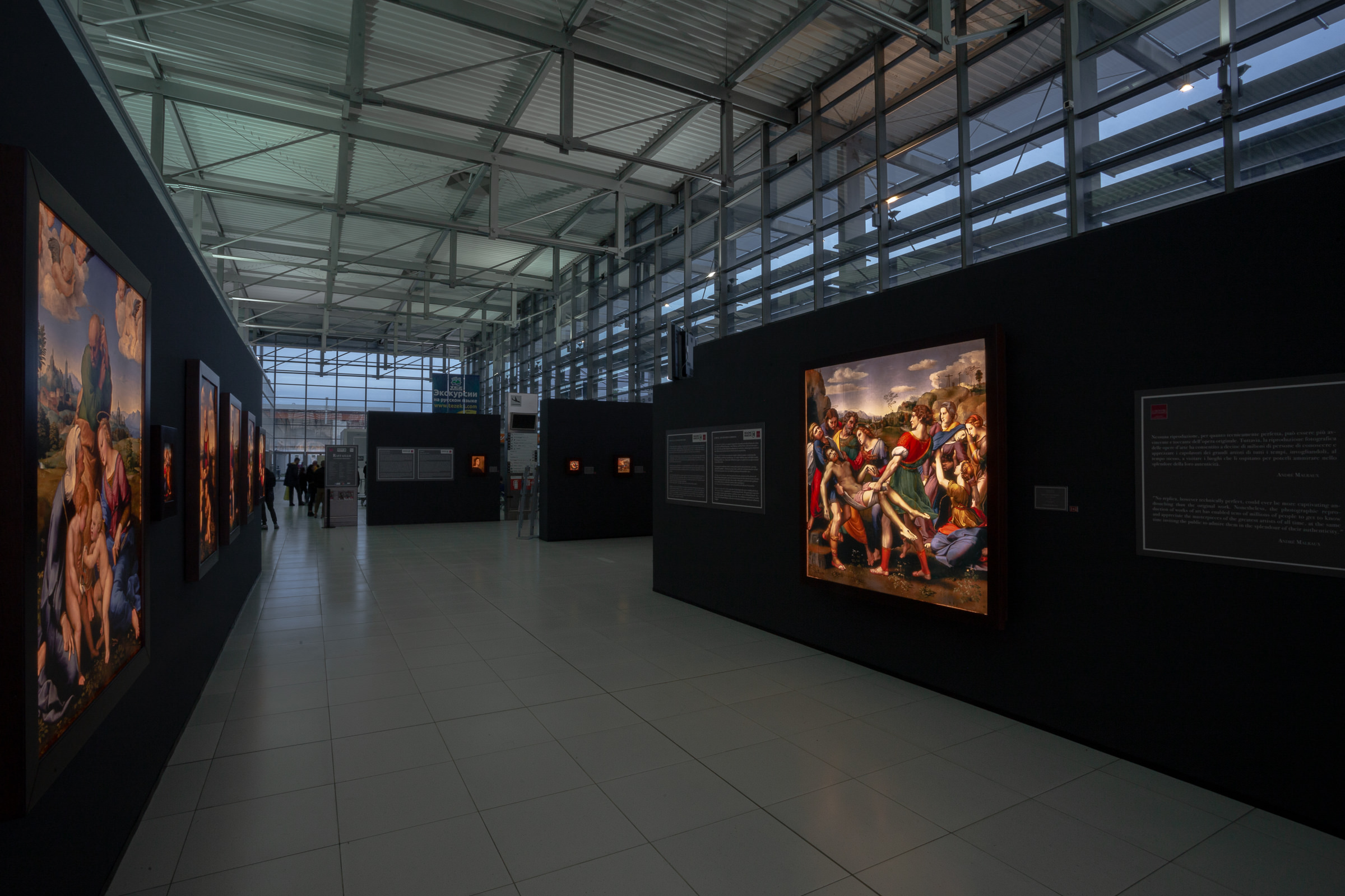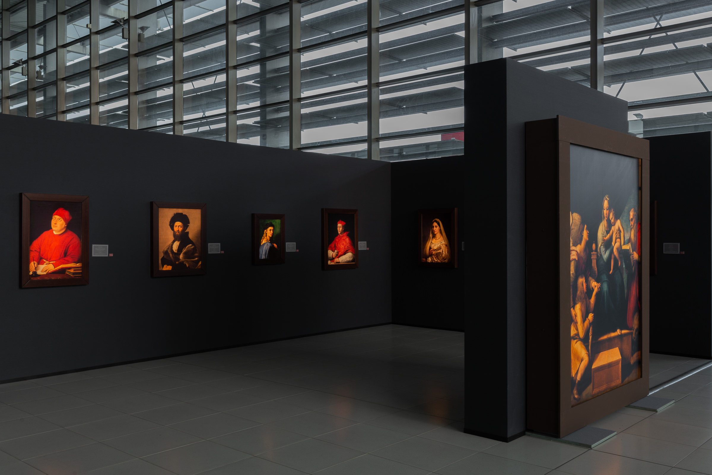 Una carriera folgorante quella di Raffaello, morto a soli 37 anni, che la mostra racconta affiancando riproduzioni di opere provenienti dai maggiori musei del mondo – dagli Uffizi di Firenze, ai Musei Vaticani, dalla Pinacoteca di Brera a Milano alla Galleria Borghese a Roma, passando per il Louvre a Parigi, il Prado a Madrid e la Gemäldegalerie a Berlino, per arrivare a San Pietroburgo all’Ermitage e alla National Gallery di Washington, solo per citarne alcuni – che conservano capolavori assoluti come la Madonna Conestabile, la Madonna di Terranuova, lo Sposalizio della Vergine, la Madonna del Cardellino, la Deposizione, il Ritratto di Baldassare Castiglione e tanti altri fino ad arrivare alle Stanze Vaticane per cui Raffaello giunse a Roma ingaggiato da papa Giulio II che segnò la sua consacrazione a interprete della ”maniera moderna”.