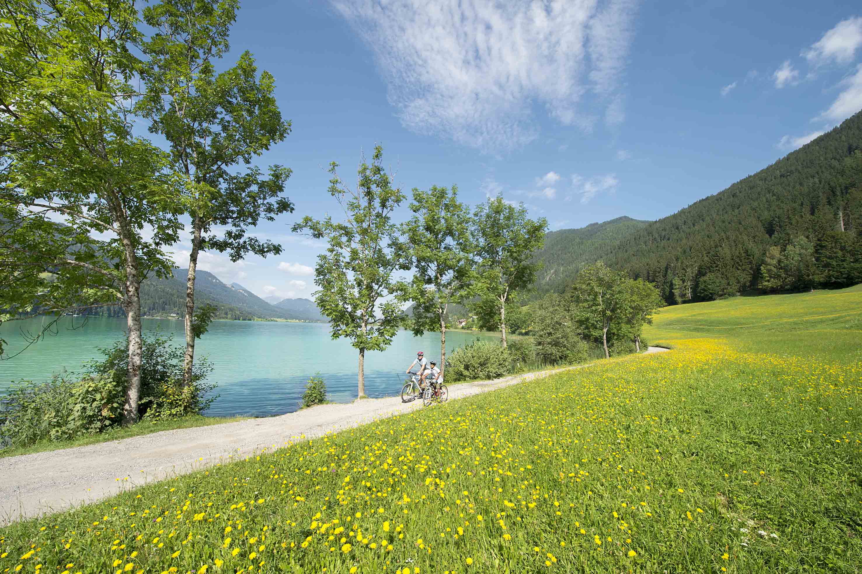 Grazie alla sua posizione centrale, il punto di partenza ideale è Villach. Lungo l’anello occidentale, il primo tratto è disegnato sulle soleggiate piste ciclabili intorno ai laghi Ossiacher See e Millstätter See. Si raggiungono poi i laghi Afritzer See e Feldsee che, soprattutto nella stagione più calda, offrono un rinfrescante diversivo. Attraverso le Gailtaler Alpen l’itinerario arriva al pittoresco Lago Weissensee, simile a un fiordo, per poi seguire la pista ciclabile delle valli Gitschtal e Gailtal fino al lago Pressegger See. Da qui si prosegue pedalando in relax verso est, superando le ripide pareti rocciose del Dobratsch per poi ritornare a Villach.