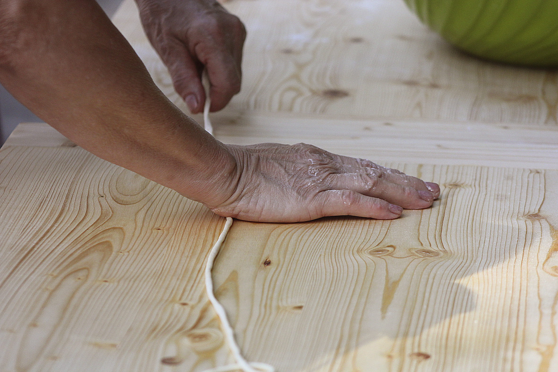 Sono giornate che vedono coinvolta l’intera comunità, uomini e donne, nonne, mamme e bambini, nella preparazione corale di montagne di pici.