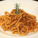 Ma per la maggiore andava, e va tutt’oggi, una salsa all’aglione; che poi non è un aglio normale, ma una varietà autoctona di grandi dimensioni, con un sapore più delicato e che, soprattutto, non rilascia quell’aroma non gradito da tutti.