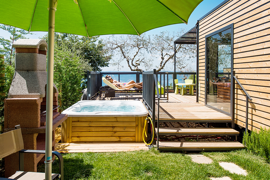 Grande classico intramontabile e immancabile, naturalmente, sono i cottage, (chiamati anche mobile homes o maxi caravan): le dotazioni, ma questo è scontato, sono complete come quelle di una casa e lo stile più amato è quello minimal chic, con design di ispirazione scandinava, declinato attraverso l’uso diparticolari in legno, elementi sapientemente dosati in metallo, cromie a contrasto e panoramiche pareti a scorrimento in vetro. L’effetto è quello di un sofisticato boutique hotel, con il vantaggio, però, di avere un angolo cottura con tanto di set coordinati da vera e propria art de la table. Chi desidera godere di un punto di vista speciale, deve scegliere quelle con affaccio diretto sul lago. Le serate in veranda con vista sul blu, godendo dell’ombra delle piante della propria area di giardino, o i momenti nella jacuzzi privata sono semplicemente perfetti. Con tutto il piacere di un’informalità vicinissima alla natura e lontana dalla rigidità del quotidiano. Let’s go glamping!