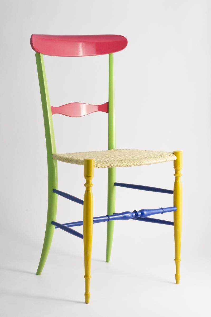 La sedia di Chiavari ha una storia curiosa: è un’invenzione di Giuseppe Gaetano Descalzi, ebanista chiavarese. Nel 1807 il Descalzi (soprannominato “Il Campanino” perché discendente da una famiglia di campanari) diede alla luce la sua famosa creazione che lo avrebbe in poco tempo consegnato alla storia. La nuova sedia apparve subito in tutta la sua singolarità: un design di grande modernità, pulito e minimale, privo degli eccessi decorativi tipici del tempo, che lasciò tutti sbalorditi per la sua capacità di unire leggerezza estrema a una robustezza senza pari. Si narra perfino che per testarne la bontà costruttiva, il Campanino gettò la sedia dalla finestra della sua abitazione: pare che la seggiola, pesante poco più di un kg, sia rimbalzata sulla strada sottostante senza rompersi, dando prova delle sue caratteristiche straordinarie. La Chiavarina conobbe in breve tempo una rapida e vastissima diffusione che la condusse in tutte le corti più importanti d’Europa e ricevette l’apprezzamento di personaggi storici, da Napoleone III a Francesco I di Borbone fino ad arrivare a tempi più recenti, con la celebre comparsa alla Casa Bianca durante lo storico incontro tra Reagan e Gorbaciov.