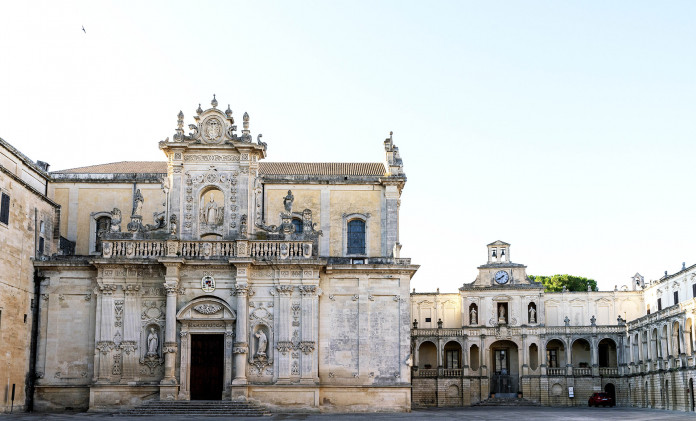 Ciò che stupisce il viaggiatore che si avventura tra i vicoli medievali della città è l’elegante esuberanza del barocco. “Tutto sembra disposto e ornato per lieve gioco teatrale; una commedia di Goldoni non vi stonerebbe; facciate di chiese, palazzi, e i loro effetti combinati, tramandano traverso i secoli un animo, direi, squisitamente provvisorio, quasi dovessero durare una sera sola. […] È il barocco leccese; che non è strutturale, tanto che, nelle chiese, accetta perlopiù la forma delle chiese romane del secolo XVI; ma le nasconde sotto una cascata di ornamenti, la quale potrebbe vestire qualsiasi stile lasciandolo inalterato, […]. Chiese e palazzi sono come ravvolti dentro una tonaca di pietra lavorata come lo stucco, senonché la pietra tenera, esposta all’aria, prende un bel colore dorato”[1].