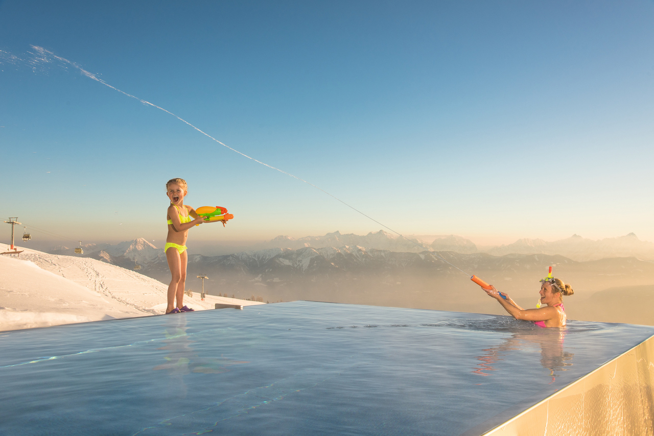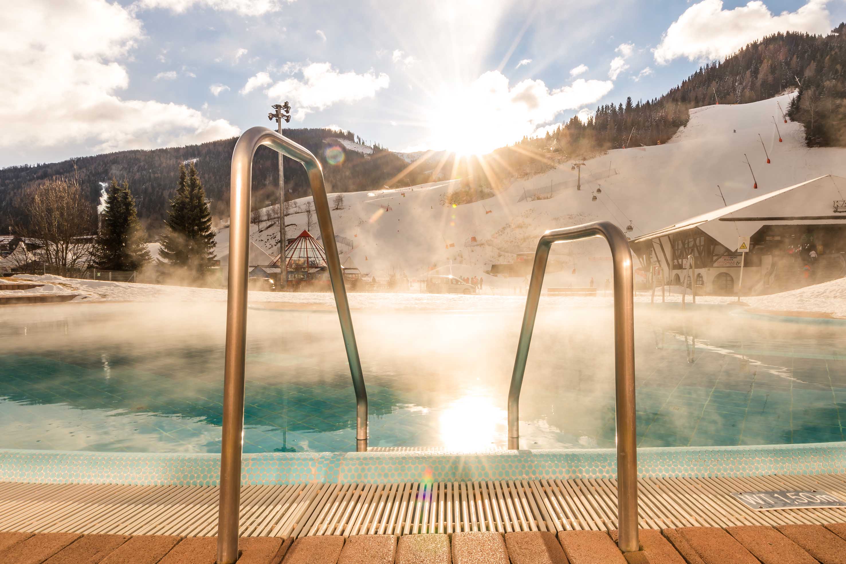 Dalle piste alle terme” è il motto dell’area di sport invernali di Bad Kleinkirchheim, stazione sciistica di Coppa del Mondo. I bagni Thermal Römerbad offrono uno spazio di 12.000 metri quadrati per coccolare il corpo e l’anima. L’acqua termale di Bad Kleinkirchheim ha effetti lenitivi contro le affezioni allergiche, l’emicrania, i reumatismi e le lesioni dei dischi intervertebrali. L’intera struttura termale ha dieci diverse saune divise su tre piani e da qui si può godere di un’ottima vista sulle piste da sci, dove gli sportivi si divertono con Franz Klammer.