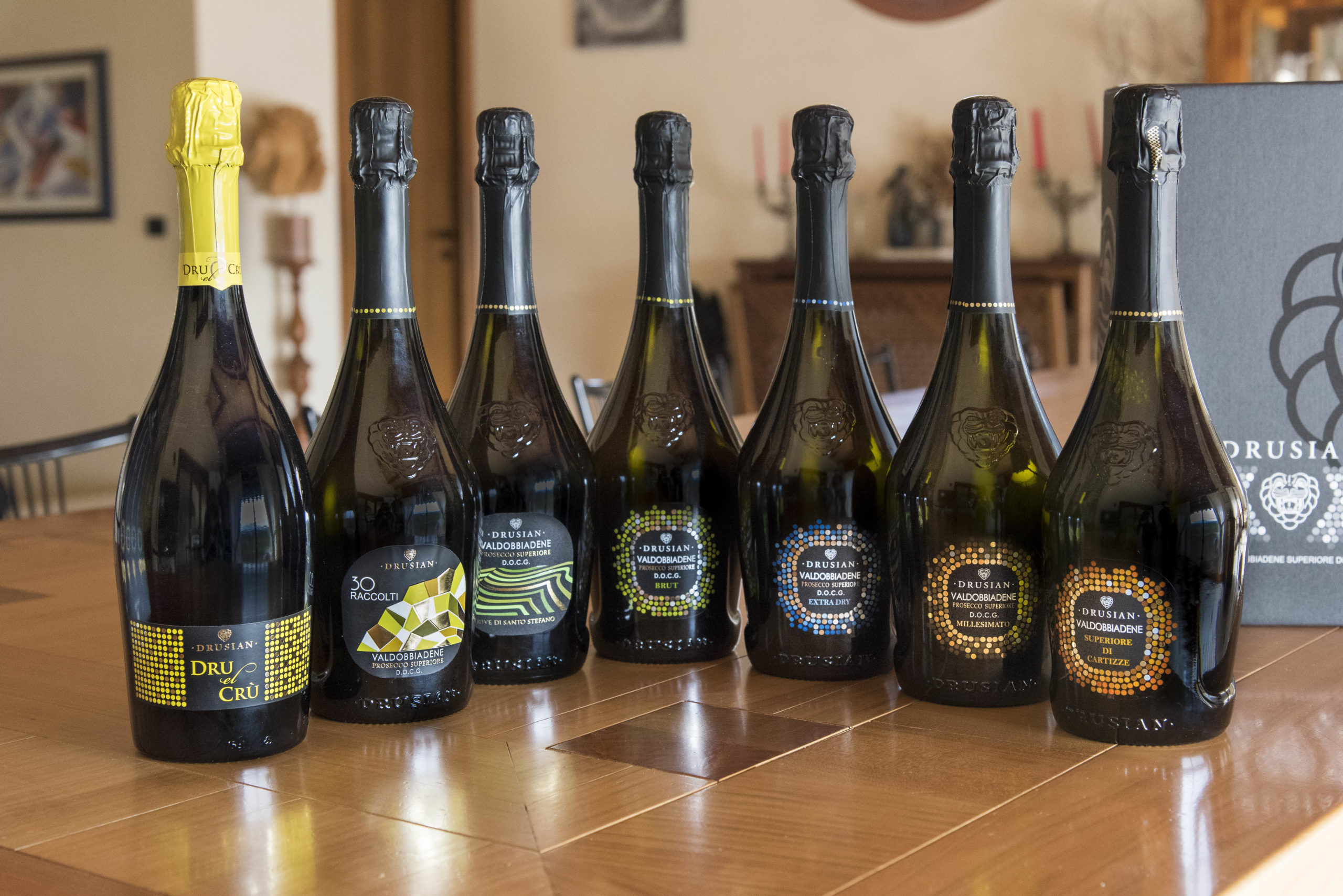 Le bottiglie di Valdobbiadene Superiore di Cartizze Dry e Valdobbiadene Prosecco Superiore DOCG nelle tre varianti brut, extra dry e millesimato dry, sono state disegnate per Drusian da O-I (Owens-Illinois) assieme allo studio grafico TreeDesign. Il design si collega fortemente al territorio perché ricorda il calice istituzionale del consorzio DOCG Conegliano Valdobbiadene capovolto; inoltre i fianchi si adattano alla presa garantendo un’impugnatura comoda.