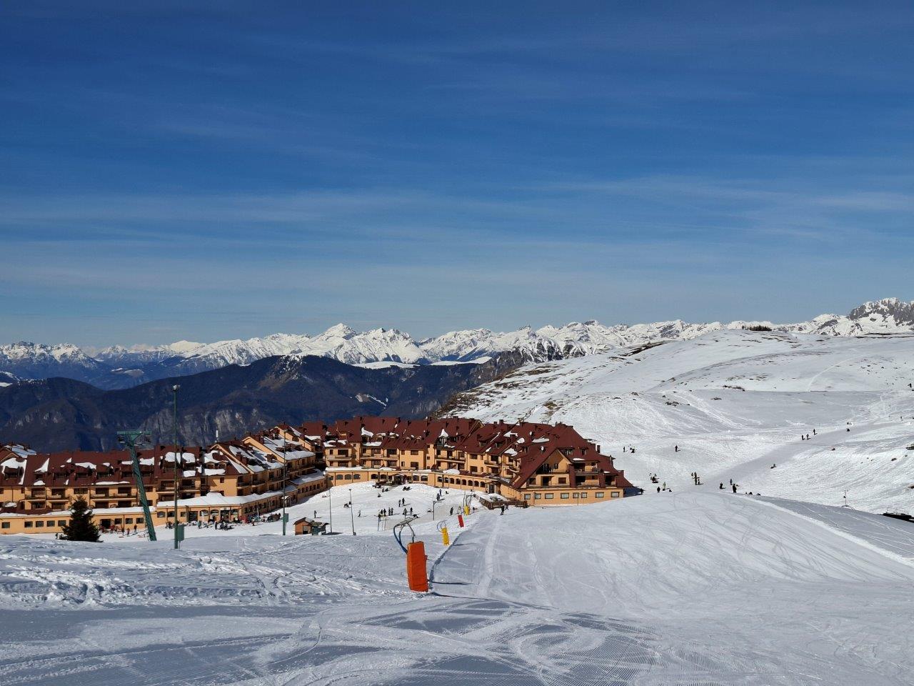Se c’è un tratto distintivo che Montecampione rivendica è l’atmosfera. Qui si respira una dimensione di familiarità difficile da replicare altrove. Montecampione (circa 2.500 appartamenti tra i due residence a quota 1.200 e 1.800) è un vero villaggio immerso nel verde, con condomini e villette incastonati nel paesaggio. Lo stile ricorda i villaggi della Costa Smeralda come Porto Cervo e Porto Rotondo, con spazi pedonali e volumi armonizzati con l’ambiente: la Piazzetta, il Laghetto, La Splaza e Valgrande sono i quattro poli attorno a cui ruota la vita quotidiana. Ci si sposta a piedi, in bicicletta o con il pulmino interno gratuito, dimenticandosi dell’auto che viene “nascosta” in grandi garage sotterranei. In inverno il Laghetto diventa pista di pattinaggio, in estate area pesca e relax.