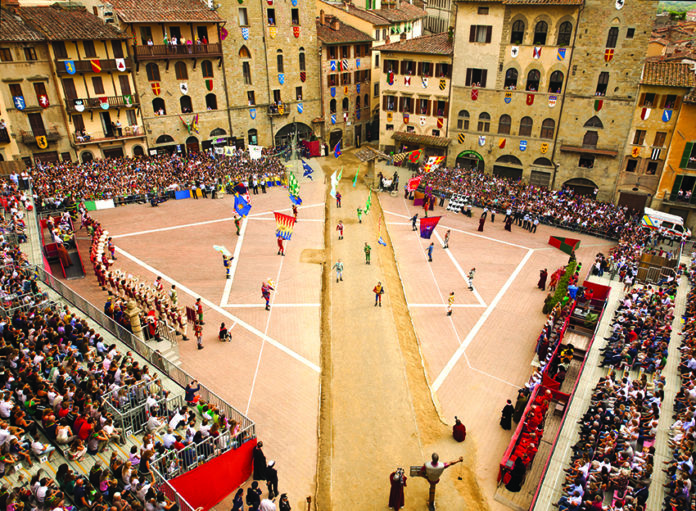 La Giostra del Saracino ad Arezzo è una delle più feste medievali più famose della Toscana. Si tratta di un torneo a cavallo tra i quattro quartieri cittadini: la splendida Piazza Grande diventa la cornice della sfida il penultimo sabato del mese di giugno, in notturna, e la prima domenica di settembre, alla luce del sole. Lo stesso Dante Alighieri racconta questa manifestazione nel XXII Canto dell’Inferno: “Corridor vidi per la terra vostra, o Aretini, e vidi gir gualdane, fedir torneamenti e correr giostra.” Preparatevi a una festa medievale ricca di emozioni e divertimento per tutti.
