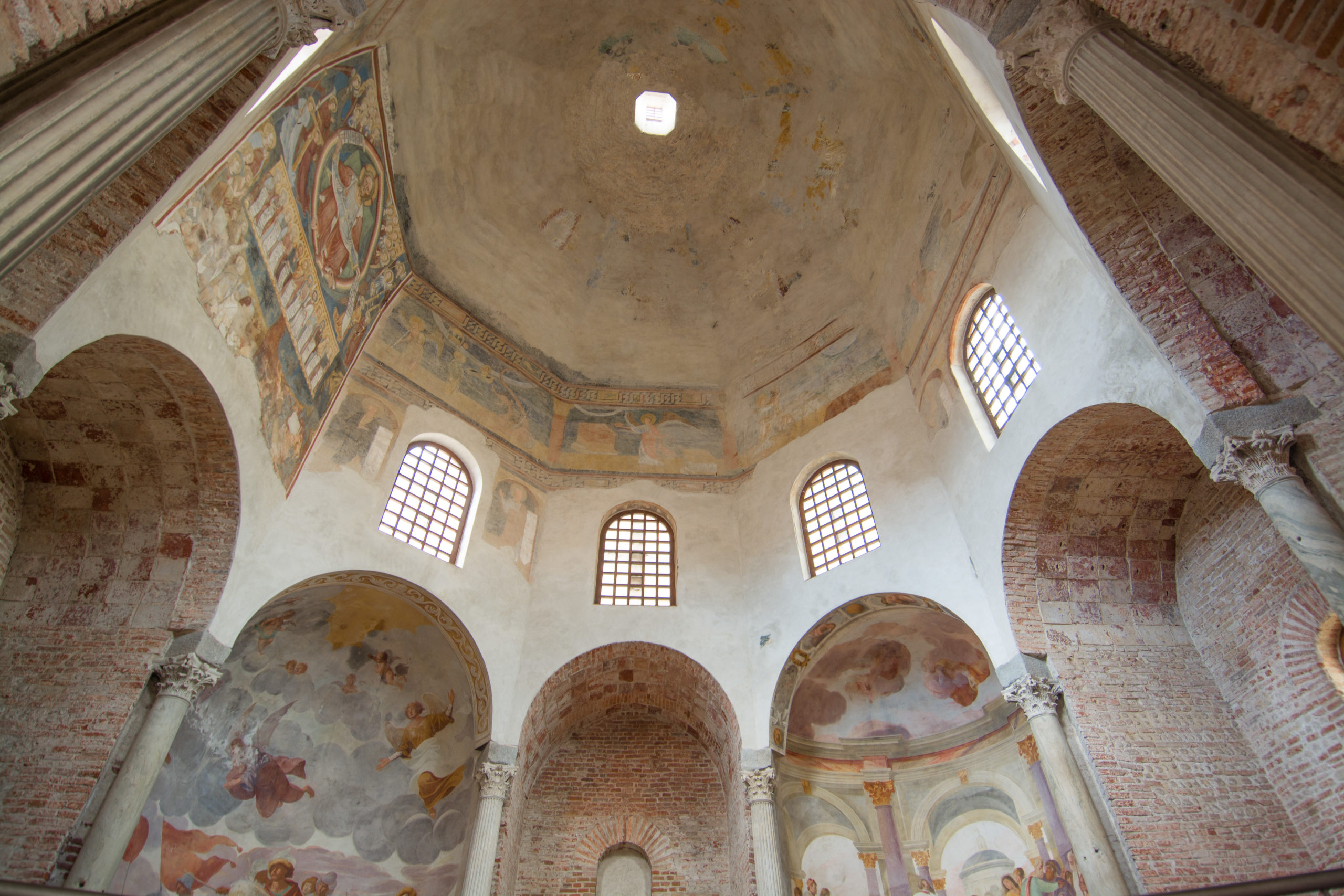 Iniziamo la scoperta di Novara dalla Basilica di San Gaudenzio, edificata nel punto più alto della città tra il 1577 e il 1690, su progetto di Pellegrino Tibaldi. Il campanile, coi suoi 92 metri, opera di Benedetto Alfieri (zio del poeta Vittorio), ha caratterizzato il panorama del capoluogo fino alla costruzione della cupola, iniziata nel 1844 dall’architetto Alessandro Antonelli, grazie a proventi derivati da una tassa sulla carne, stabilita dal re Carlo Felice di Savoia. Negli oltre 40 anni di cantiere, l’Antonelli presentò diversi piani di costruzione all’amministrazione comunale, sempre più preoccupata dalle ingenti spese. Nel 1878 alla sommità fu posta la statua del Cristo Salvatore, realizzata in bronzo ricoperto di lamine d’oro, per 5 metri di altezza, opera di Pietro Zucchi, attualmente conservata all’interno della basilica, mentre in cima alla cupola è collocata una copia in vetroresina. L’esterno della struttura è scandito da una “geometria dei vuoti e dei pieni” e da due colonnati che contribuiscono a dare maggiore slancio, per un’altezza totale di 126 metri. La genialità dell’Antonelli sta nell’aver ideato un progetto così ambizioso con ben 2046 metri cubi di mattoni in un periodo storico che vedeva il trionfo del ferro, dando un saggio dell’abilità delle maestranze novaresi e della qualità del materiale utilizzato, di provenienza esclusivamente locale. Nel 1887 terminarono i lavori di costruzione della cupola, inaugurata il giorno di San Gaudenzio. Usciamo dalla basilica e svoltiamo a sinistra, sulla via San Gaudenzio, proseguendo dritto fino all’incrocio con Via Fratelli Rosselli, quindi giriamo a sinistra e arriviamo al Broletto (350 metri), i cui edifici disposti a quadrilatero con un cortile centrale, furono edificati tra il XIII e il XVIII secolo. Il lato ovest è occupato dal quattrocentesco Palazzo dei Referendari. Al suo interno facciamo visita ai Musei Civici, che comprendono una sezione archeologica, con reperti rinvenuti nel territorio novarese a partire dall’età neolitica fino all’epoca longobarda, e da una sezione storico-artistica, con opere che vanno dal XIII secolo al Novecento, documentando la produzione artistica della zona. Nello stesso palazzo, la Galleria d’Arte Moderna Paolo e Adele Giannoni, donata al comune da Alfredo Giannoni negli anni Trenta, comprende più di 800 opere di pittori italiani degli ultimi due secoli. Usciamo dal Broletto, dal lato di Piazza della Repubblica per dirigerci verso il lungo colonnato antistante al Duomo o Cattedrale di Santa Maria Assunta, un grandioso edificio neoclassico, realizzato nella seconda metà dell’Ottocento dall’Antonelli nel sito in cui sorgeva l’antica cattedrale romanica, di cui rimane il campanile, che fu abbattuta per far posto alla nuova chiesa. Il grandioso portale centrale è considerato tra i più alti d’Europa. L’interno è scandito in tre navate divise da colonne in stucco marezzato color giallo-ocra coronate da capitelli corinzi. L’altare, opera dello stesso architetto, è costituito da 377 blocchi di marmo proveniente da Verona, Carrara e Varallo. Nell’ala est della cattedrale visitiamo i Musei della Canonica, in cui trovano spazio opere provenienti dall’antica Cattedrale e dal Battistero, arredi sacri, codici miniati, statue e collezioni numismatiche provenienti dalle chiese del territorio. Antistante al Duomo troviamo il Battistero paleocristiano, monumento più antico della città, a pianta ottagonale e che conserva al suo interno i resti della primitiva vasca battesimale. Usciamo dal colonnato della Cattedrale su Piazza della Repubblica e svoltiamo a sinistra su Via Fratelli Rosselli, ancora sinistra su Piazza Martiri della Libertà, per entrare nel Castello Visconteo-Sforzesco (300 metri), sorto nel 1272 sulle antiche mura romane e passato poi alla famiglia dei Visconti e degli Sforza. Di quell’epoca rimane solo la cosiddetta Rocchetta, una torre all’angolo nord-ovest e lo stemma visconteo sopra l’arco d’ingresso. Nel Cinquecento perse la sua funzione militare, fino a essere trasformato in luogo di passeggio pubblico durante il periodo sabaudo, mentre in quello napoleonico fu riadattato in carcere, il che comportò un danneggiamento della struttura. Tra i vari detenuti è da ricordare Claretta Petacci, amante di Mussolini. Nel 1973, il castello passò all’amministrazione municipale, poi al Corpo Forestale. Dopo molti anni di inutilizzo, fu avviato un lungo intervento di restauro, durante il quale fu costruita ex-novo una torre non presente in origine, fatto che sollevò non poche polemiche. L’edificio, circondato su tre lati dai giardini pubblici, fu riaperto nel 2016. Usciamo dal Castello e svoltiamo a sinistra su Baluardo Quintino Sella, che percorriamo per 500 metri fino a Casa Bossi, uno dei migliori esempi di architettura civile dell’Ottocento, restaurata su progetto dell’Antonelli. Il carattere nobile del palazzo si mostra nella disposizione degli spazi e degli ambienti espressamente di rappresentanza, compresi i giardini e le scuderie. Fu abitato da personaggi di caratura internazionale, tra cui il “pittore della luce” Antonio Calderara, l’architetto Luigi Vietti e lo scrittore Sebastiano Vassalli.