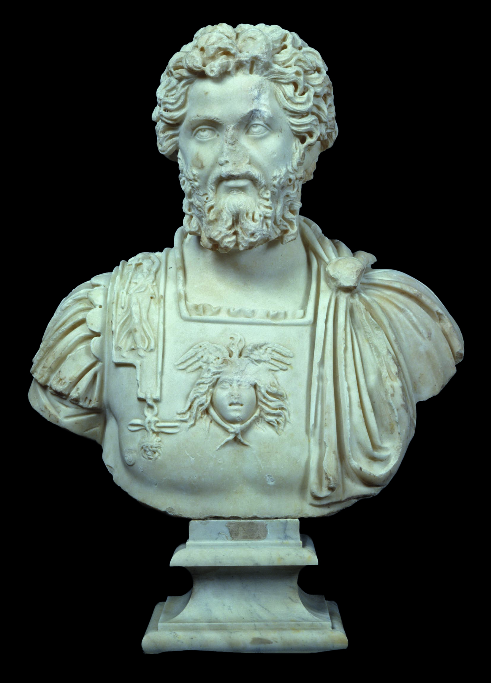 Una ricca sequenza di ritratti della dinastia apre il percorso, ricordando le origini della famiglia: con Settimio Severo proveniente da Leptis Magna, in Libia, e con la moglie Iulia Domna da Emesa, in Siria, nominata Augusta e donna di grande influenza politica. Tra i pezzi in mostra, anche tre rilievi di recente scoperta negli scavi della metropolitana di Napoli, appartenenti a un Arco onorario. Senza dimenticare i frammenti della Forma Urbis, mappa catastale in marmo voluta da Settimio Severo, ancora oggi fondamentale documento per lo studio dell’antica topografia di Roma e in mostra oggetto di una scenografica ricostruzione multimediale. Testimonianza poi della fioritura nel campo dell’artigianto artistico, i vetri finemente lavorati da Alessandria d’Egitto e da Colonia, le ceramiche dalla Tunisia o i sublimi argenti conservati al Metropolitan Museum of Art (USA).