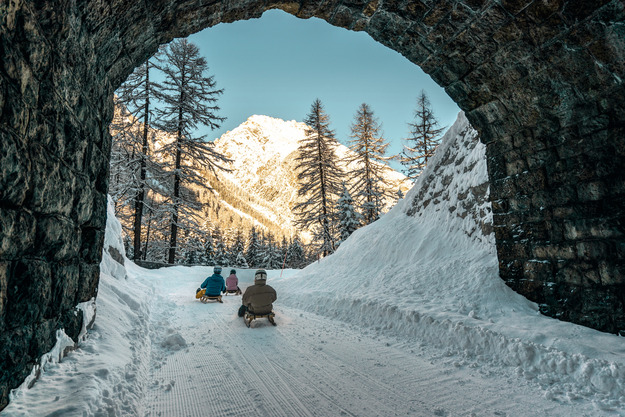 - Discesa in slittino sul famoso percorso lungo 6 km da Preda a Berguen.