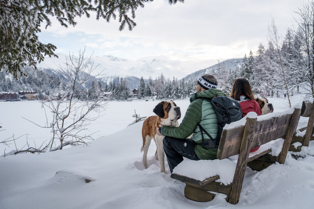 - Passeggiata invernale con i cani San Bernardo lungo Champex-Lac.