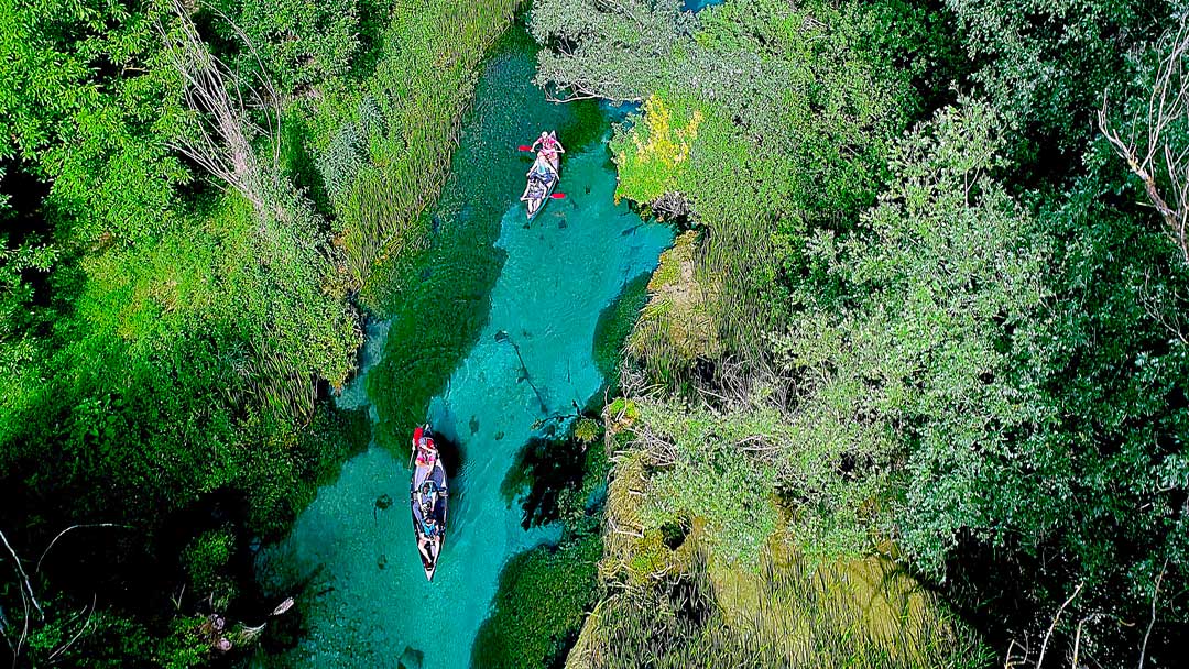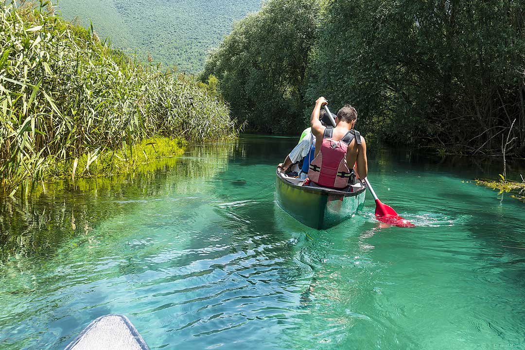 È il caso dell’escursione in canoa: due ore e mezza di immersione totale nell’ambiente incontaminato del fiume Tirino.
